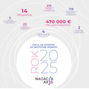 Rok 2025 bol pre Nadáciu AXIS rokom intenzívnej práce, spolupráce a konkrétnej pomoci. Vďaka podpore darcov, partnerov, odborníkov a dobrovoľníkov sme mohli stáť pri pacientoch